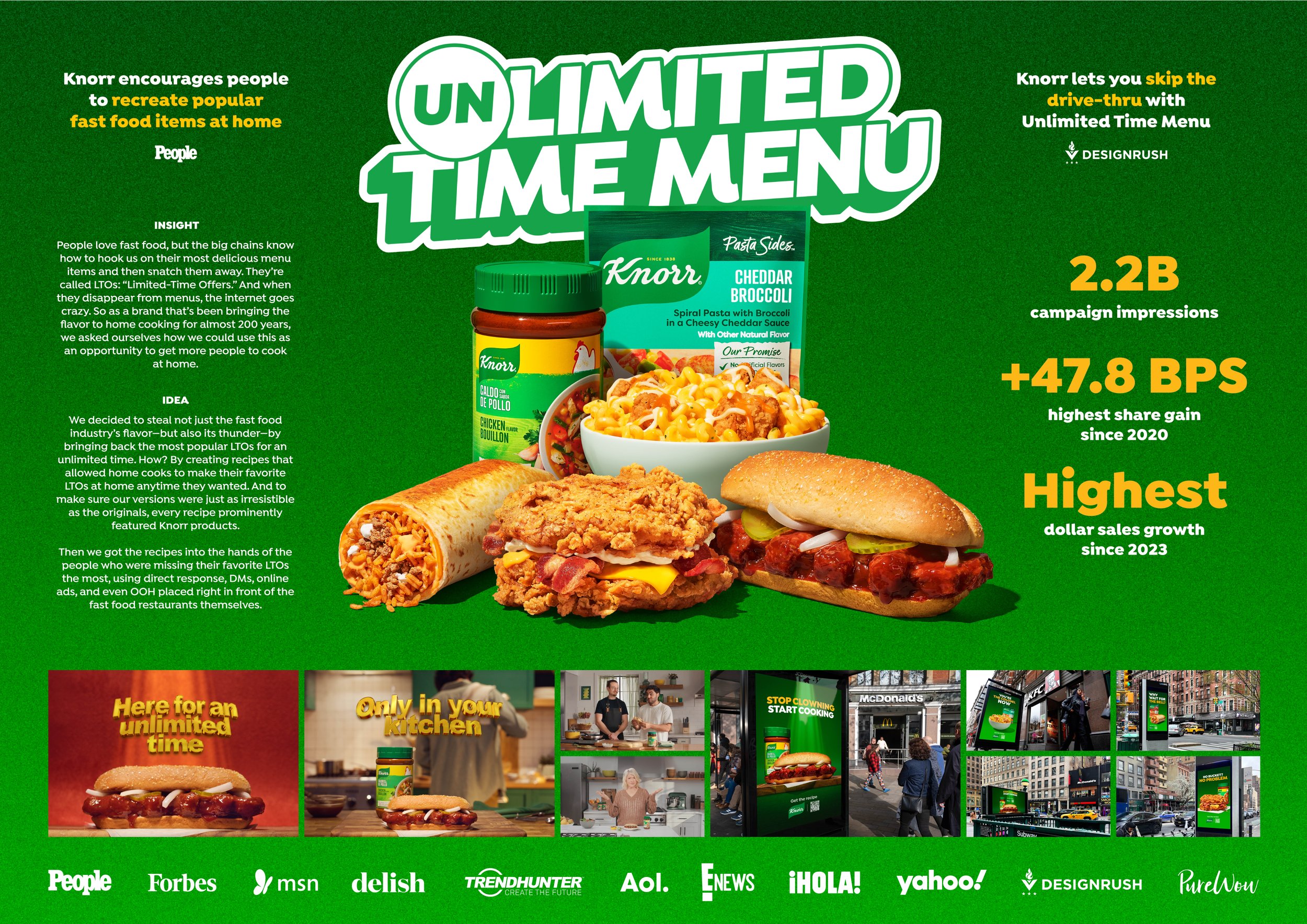 People love fast food and the big chains really know how to hook us, releasing their most delicious menu items as “Limited-Time Offers.” And the second they disappear from menus, the internet goes crazy. So we decided to not only steal the fast food industry’s flavor, but also their thunder, by bringing back the most popular LTOs for an unlimited time by creating recipes that gave home cooks the ability to make their favorite LTOs at home with Knorr products.
