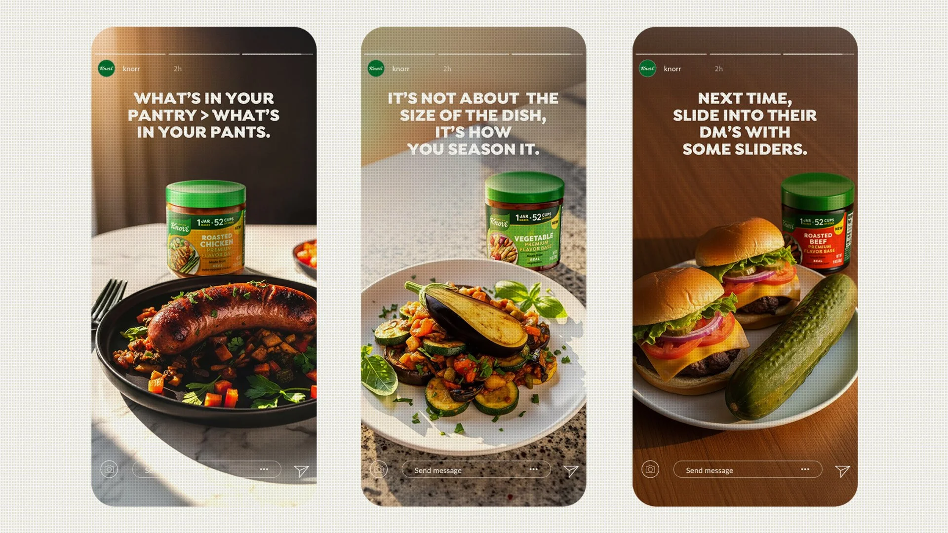 To launch new Premium Flavor Bases, Knorr needed to show that home cooking was a flex rather than a monotonous chore. So, we created a movement encouraging men to stop sending d*ck pics and start sending #DishPics.