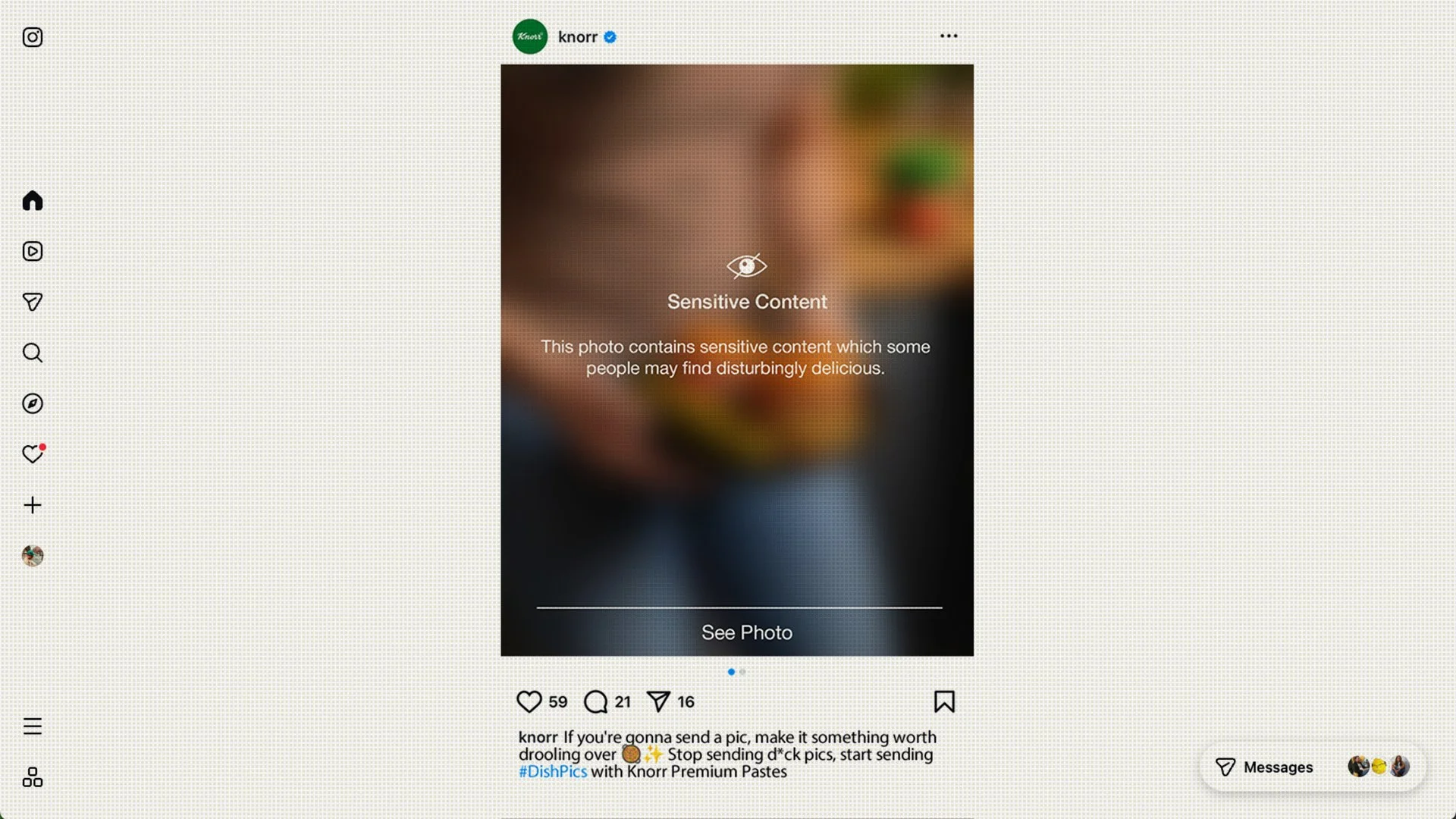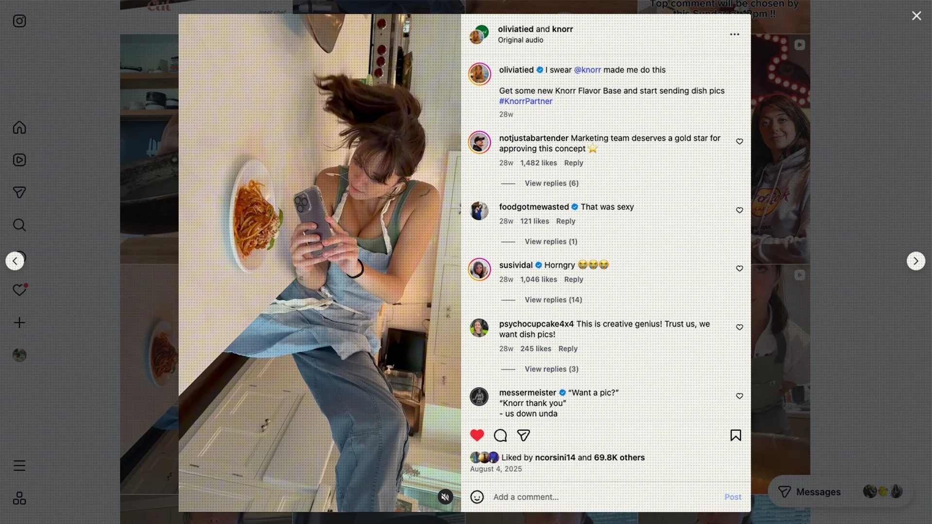 We launched by collaborating with Olivia Tiedemann, a creator whose culinary expertise and humorous style made her the ideal voice to deliver our message. Then, we expanded our reach with additional foodie influencers, a woman-on-the-street video, and a collection of social-first assets, which included hacking the sensitive content warning filters on Instagram.